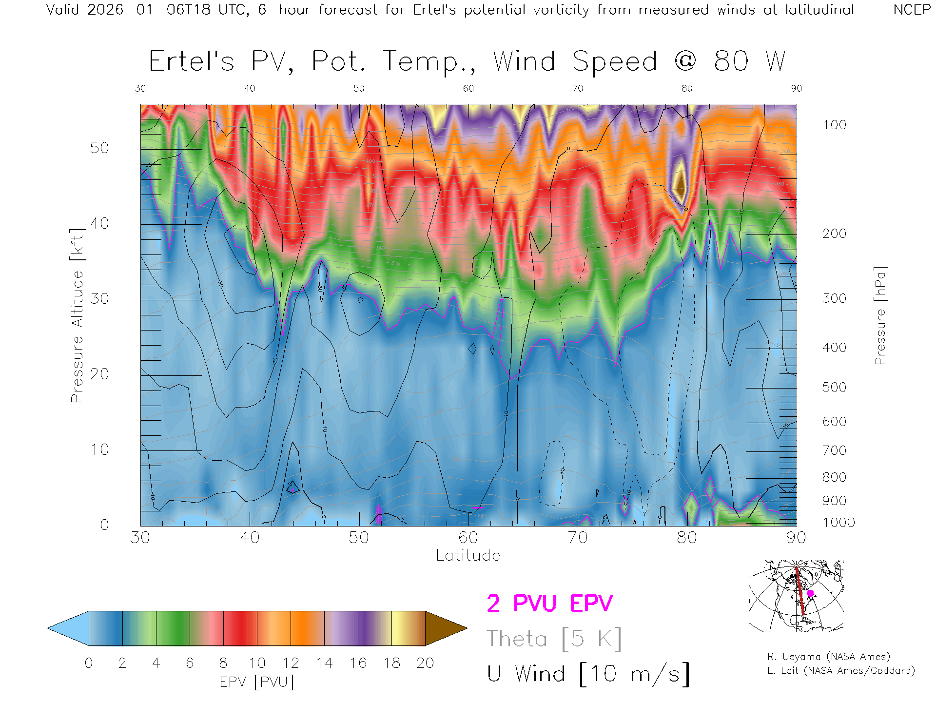 NCEP GFS Forecast PV X-Section (80 W)