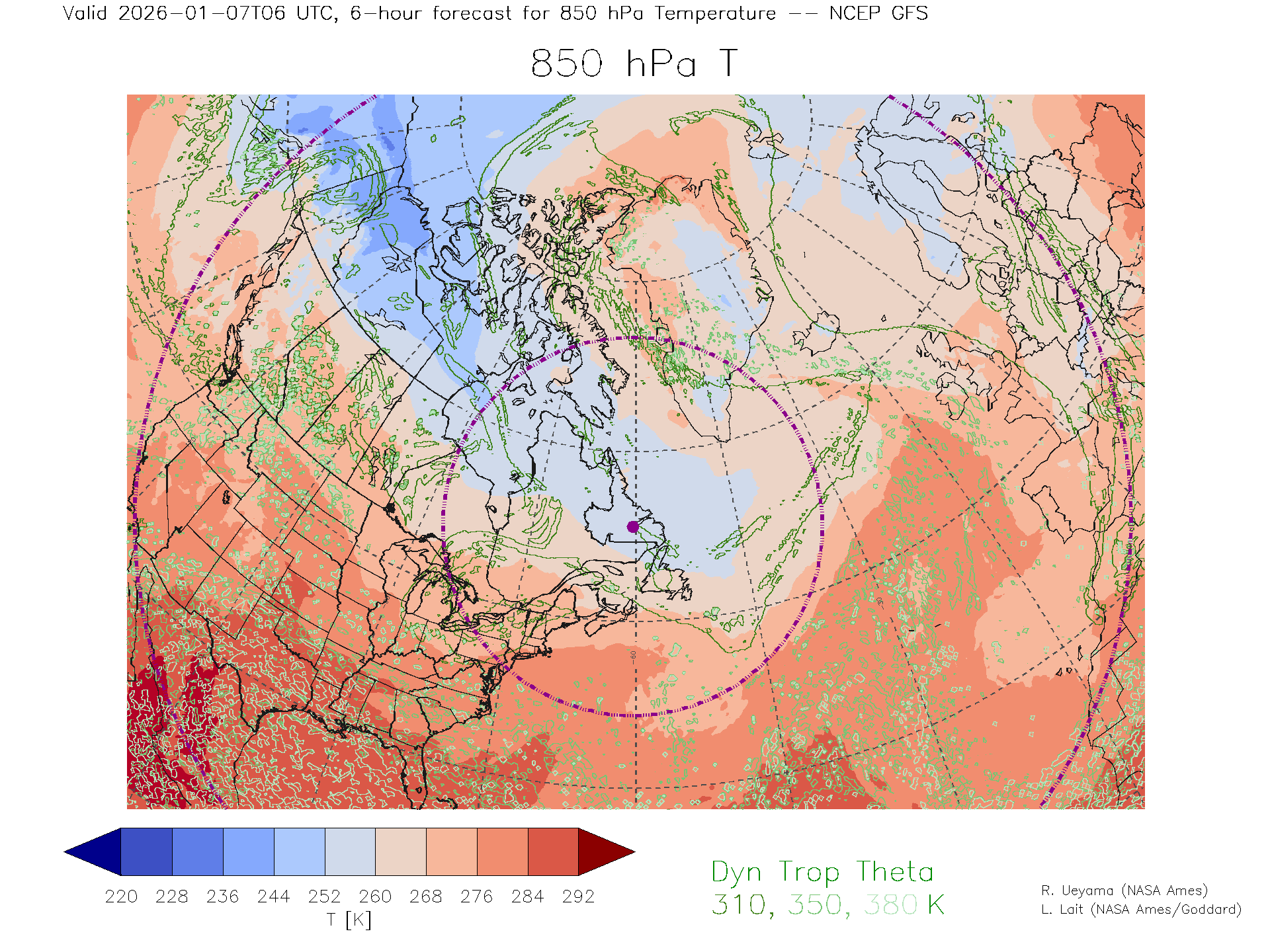 NCEP GFS Forecast 850 hPa Temp.