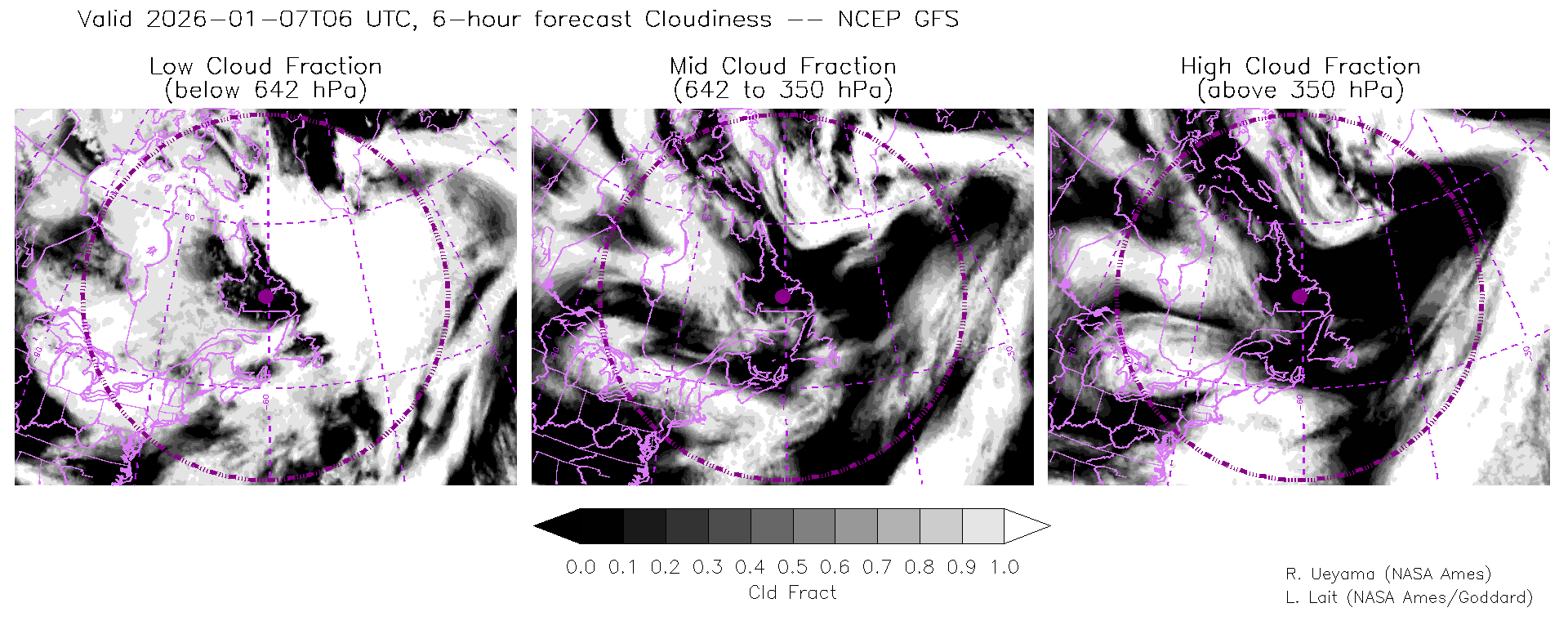NCEP GFS Forecast Cloud Fraction (High, Mid, Low)