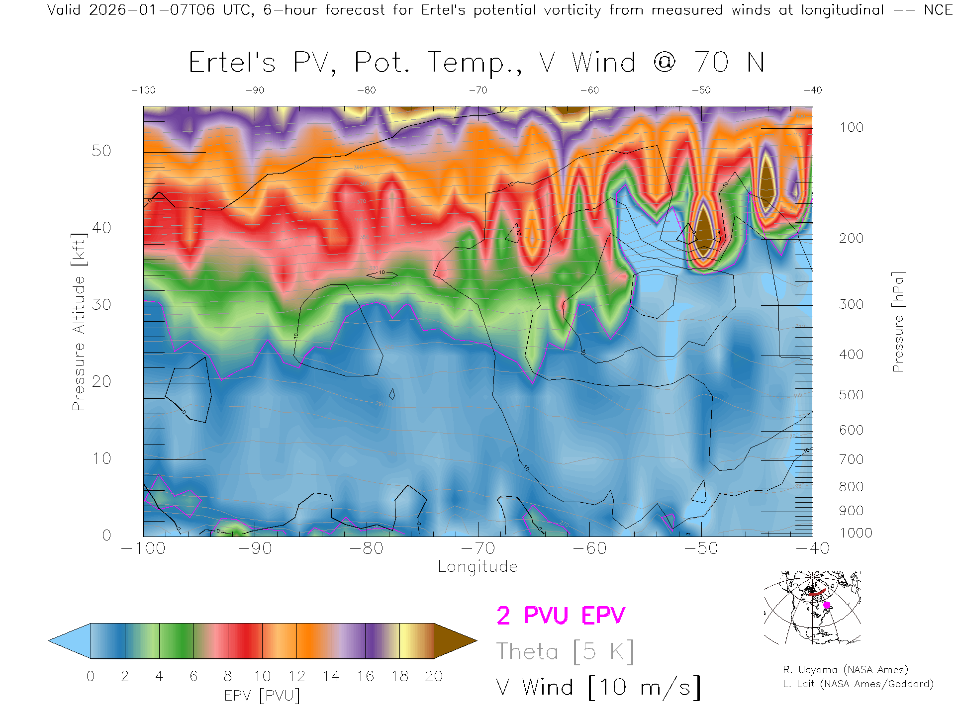 NCEP GFS Forecast PV X-Section (70 N)