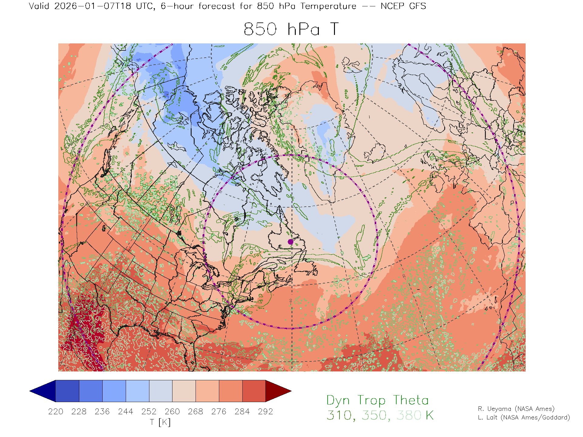 NCEP GFS Forecast 850 hPa Temp.
