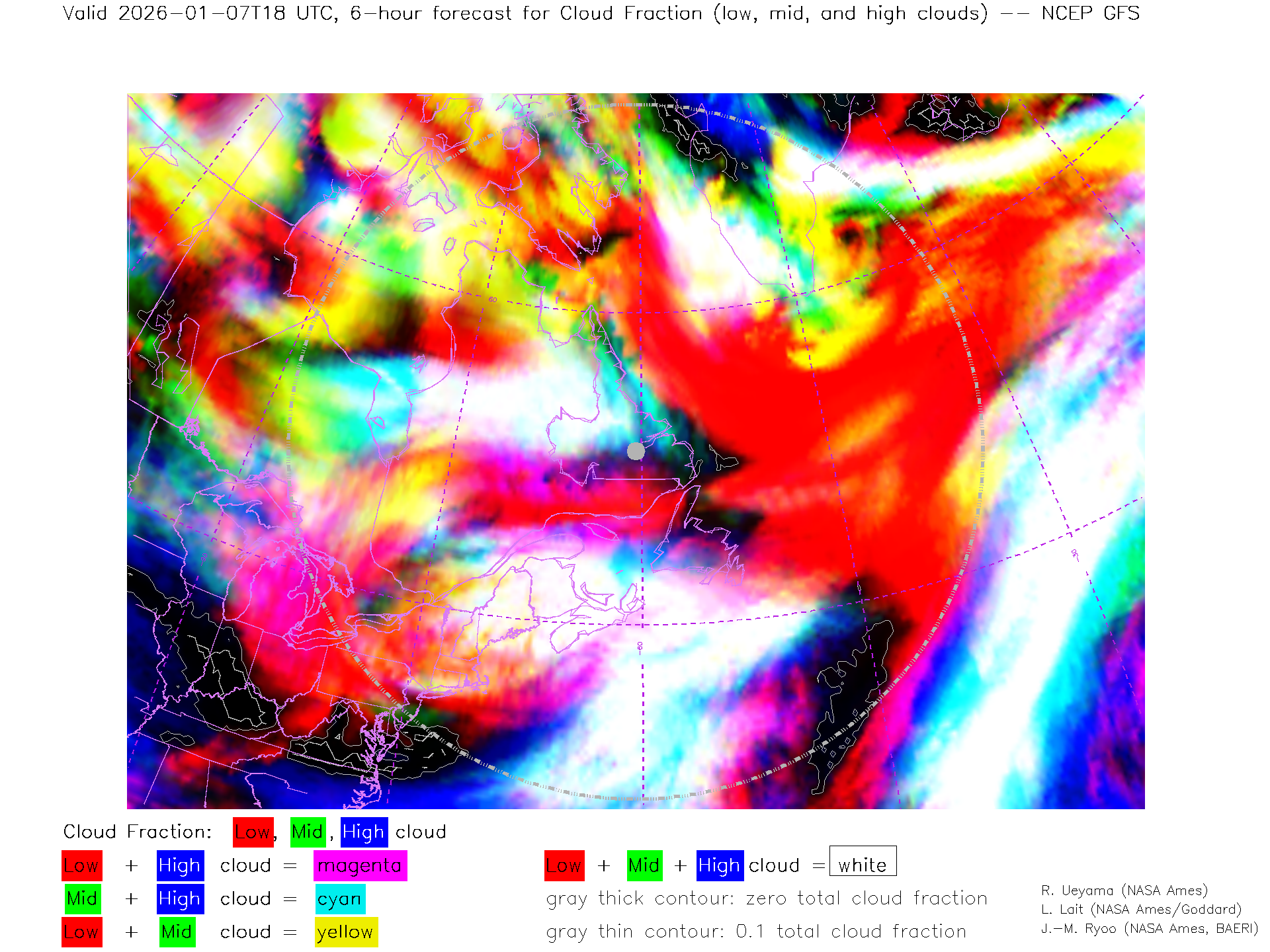 NCEP GFS Forecast Low-, Mid- and High-level Cloud Fraction