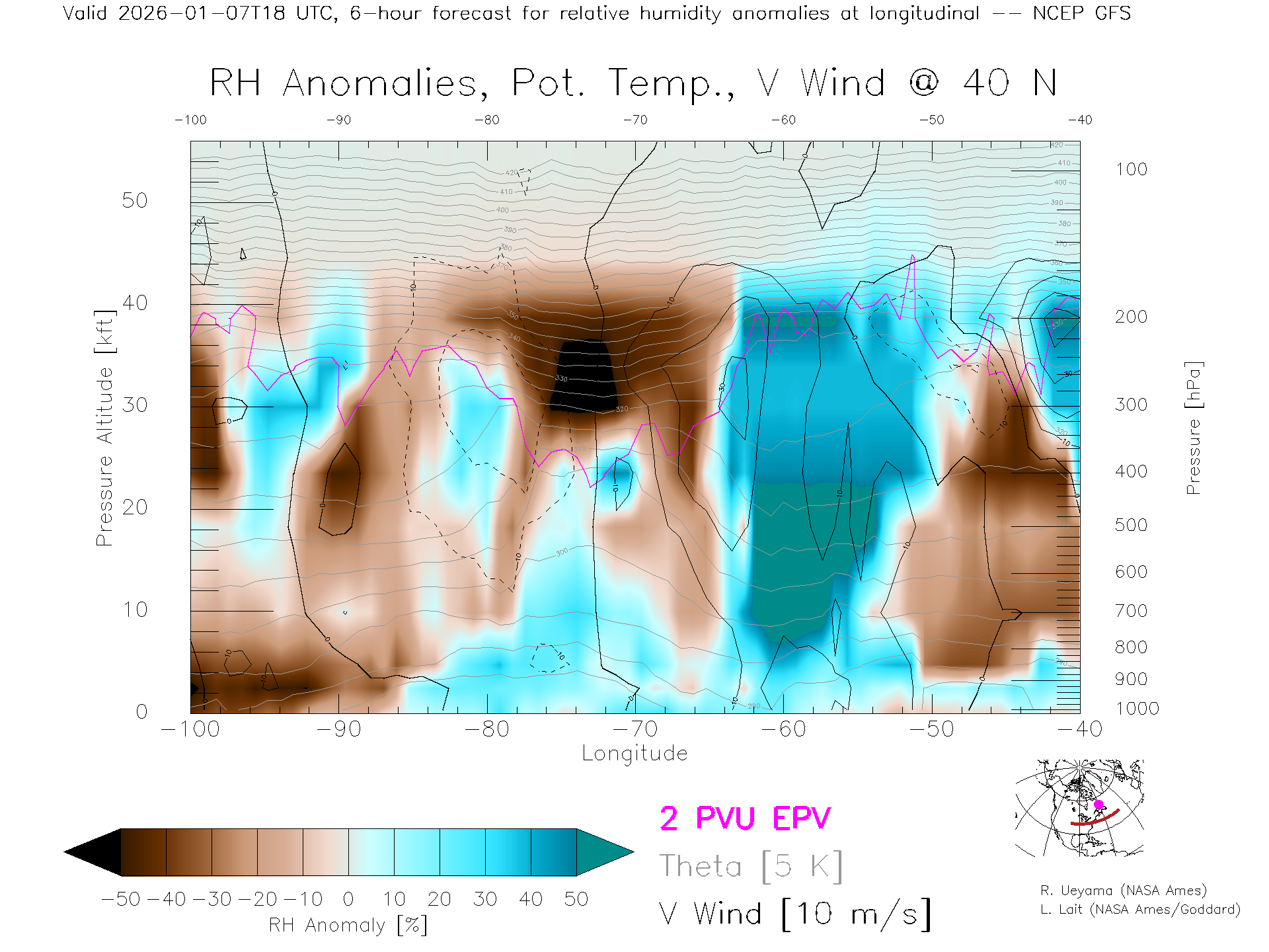 NCEP GFS Forecast Rel. Hum. X-Section (40 N)