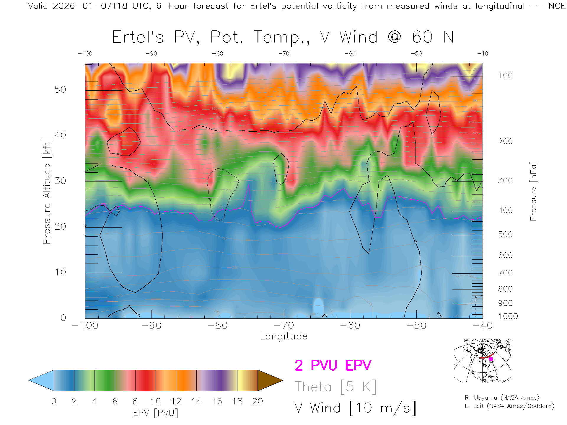 NCEP GFS Forecast PV X-Section (60 N)