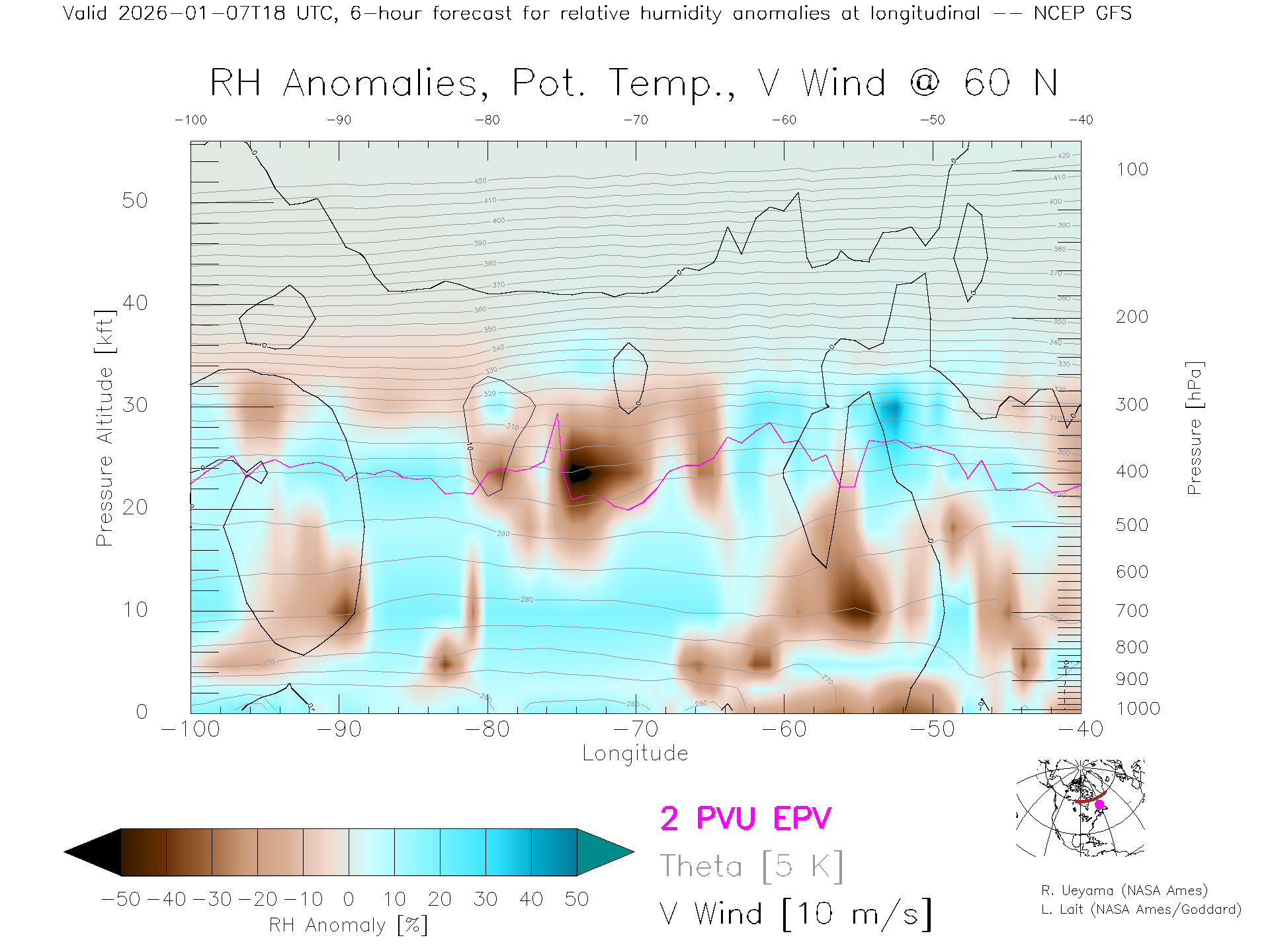 NCEP GFS Forecast Rel. Hum. X-Section (60 N)