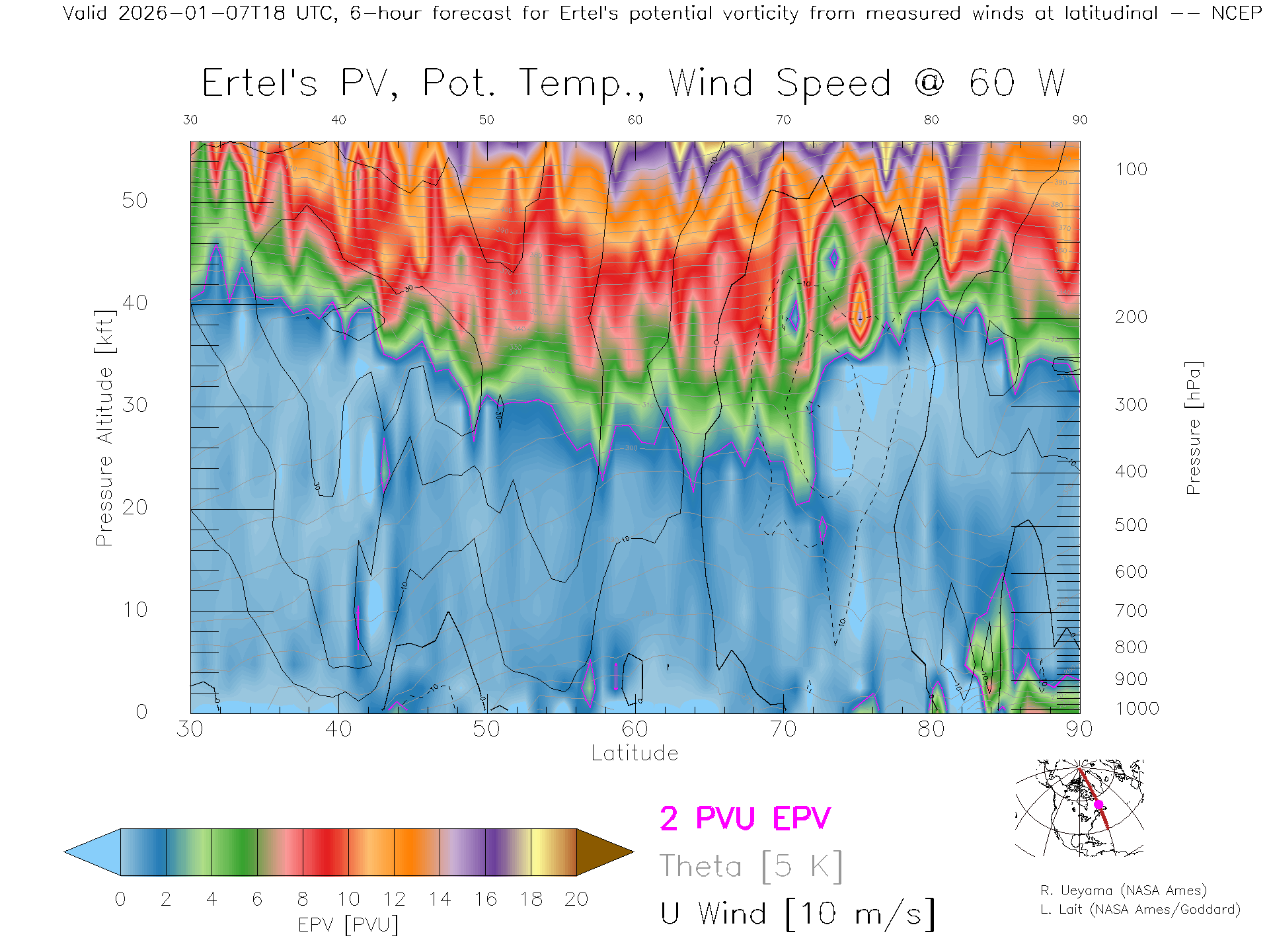 NCEP GFS Forecast PV X-Section (60 W)