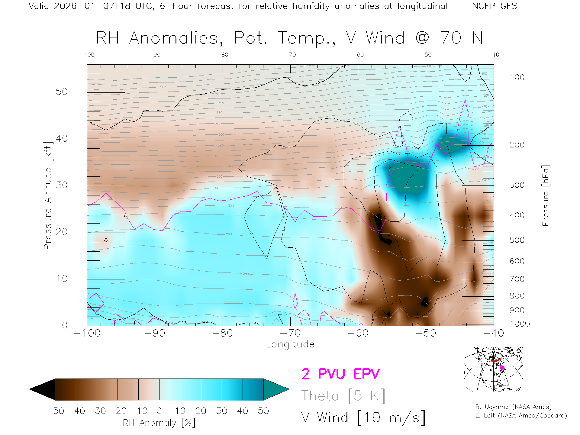NCEP GFS Forecast Rel. Hum. X-Section (70 N)