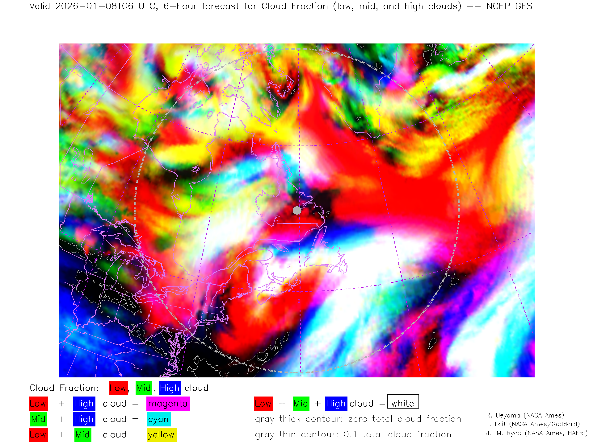 NCEP GFS Forecast Low-, Mid- and High-level Cloud Fraction