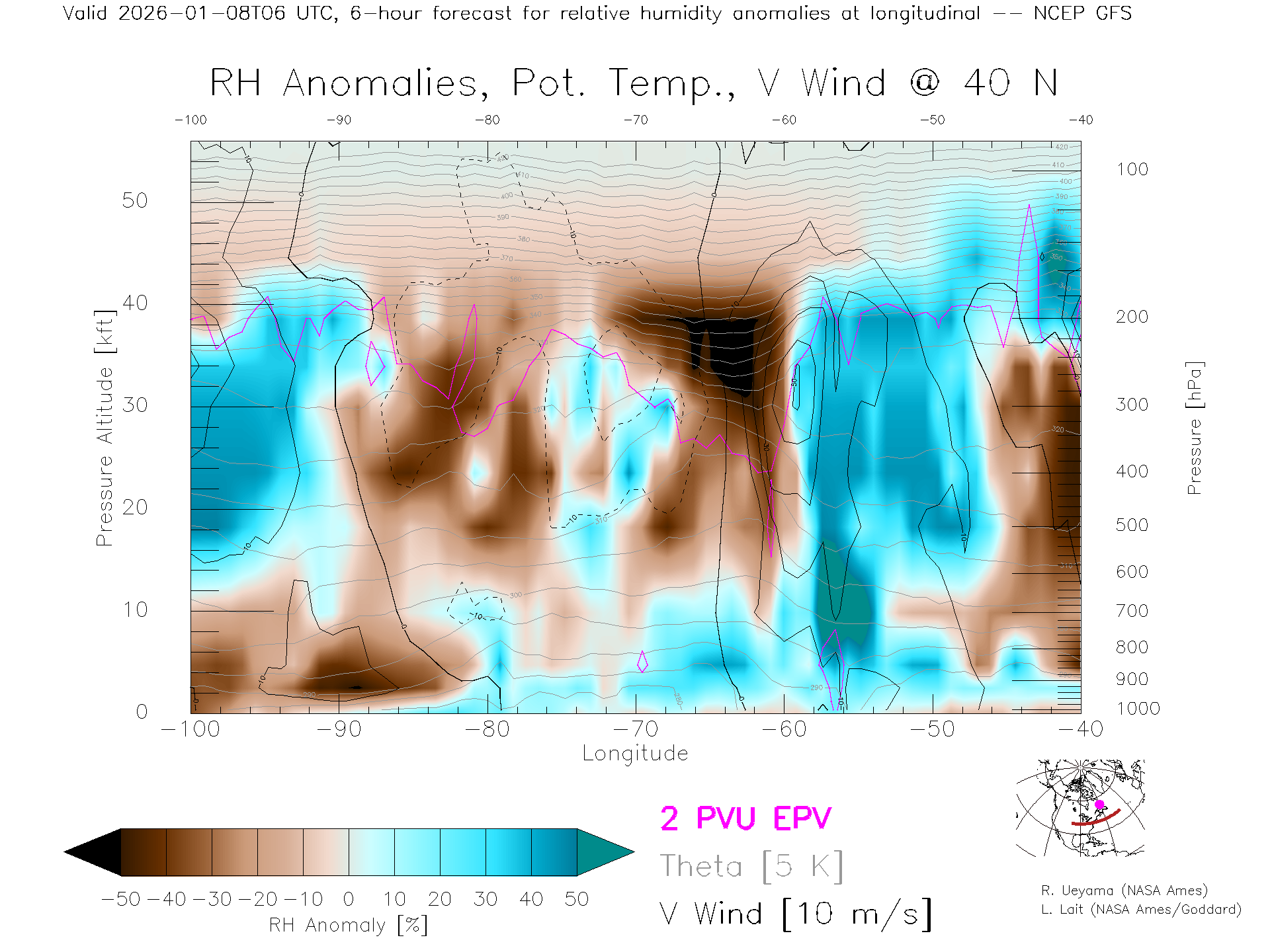 NCEP GFS Forecast Rel. Hum. X-Section (40 N)