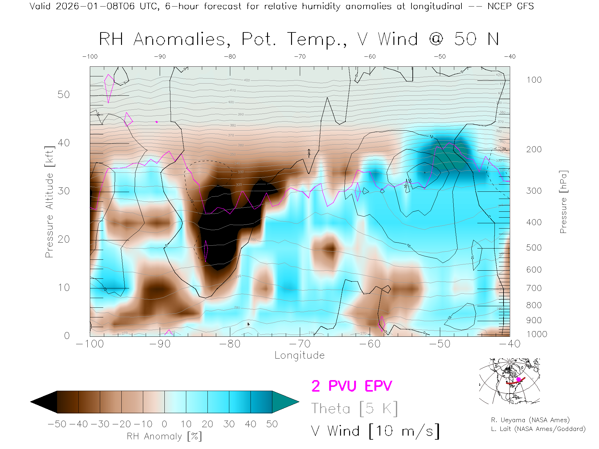 NCEP GFS Forecast Rel. Hum. X-Section (50 N)
