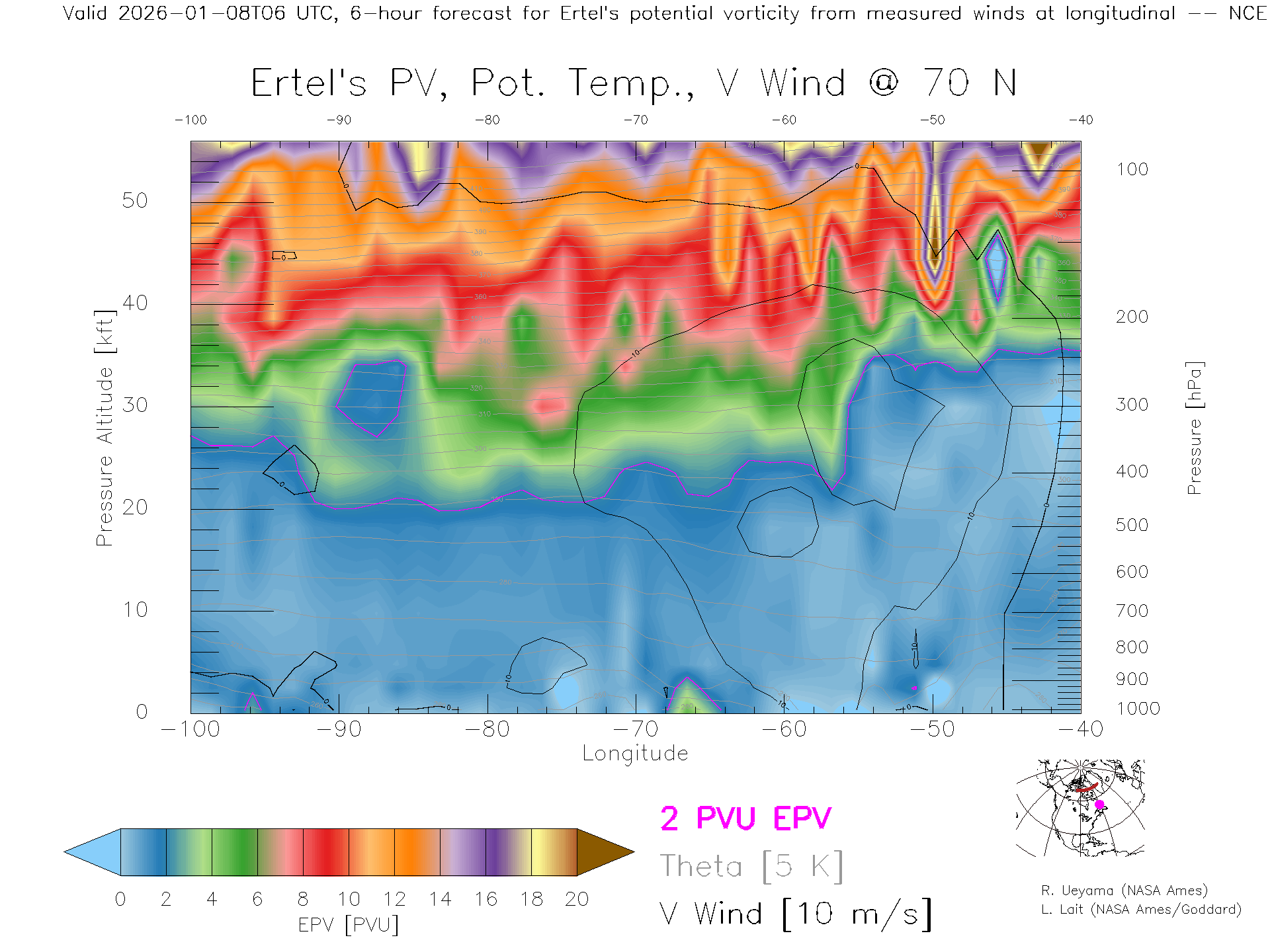 NCEP GFS Forecast PV X-Section (70 N)