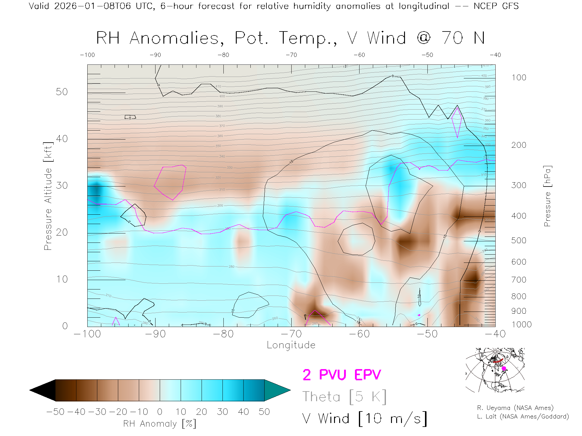 NCEP GFS Forecast Rel. Hum. X-Section (70 N)