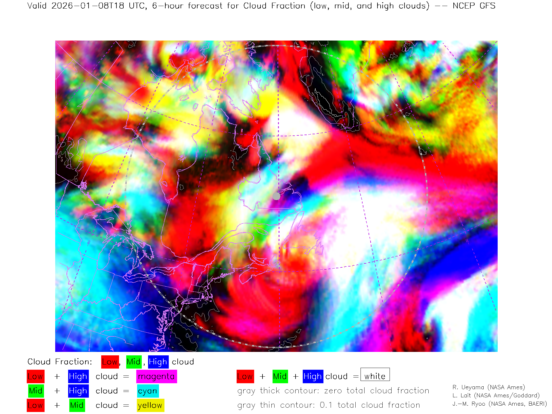 NCEP GFS Forecast Low-, Mid- and High-level Cloud Fraction