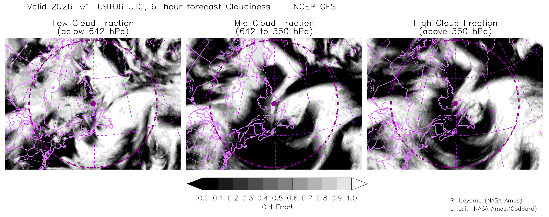 NCEP GFS Forecast Cloud Fraction (High, Mid, Low)