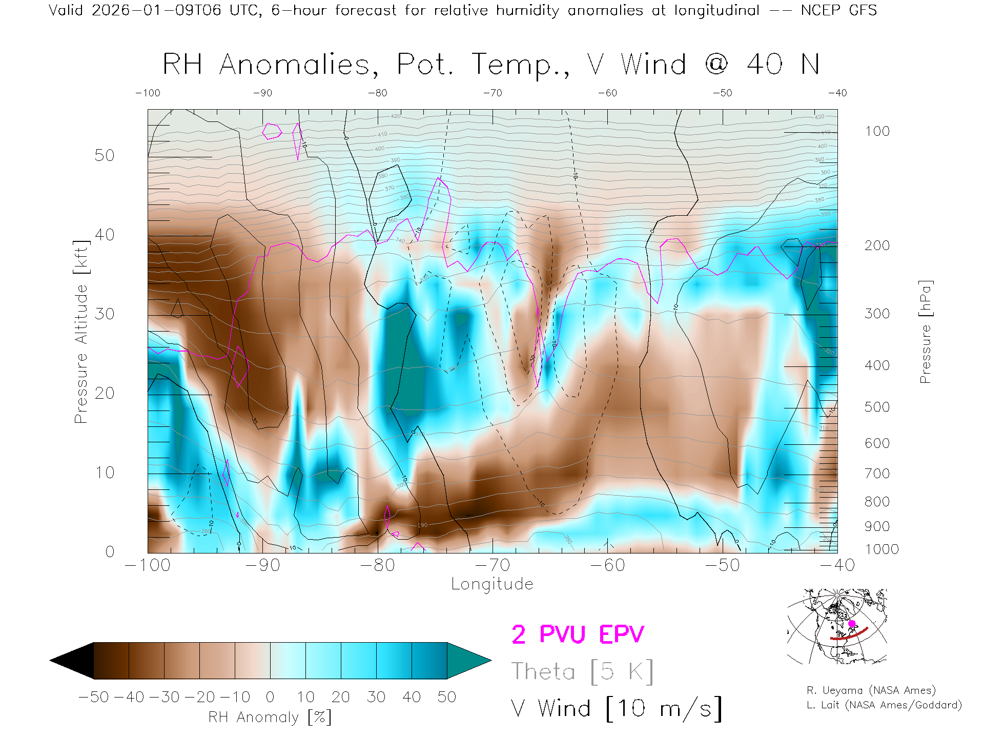 NCEP GFS Forecast Rel. Hum. X-Section (40 N)