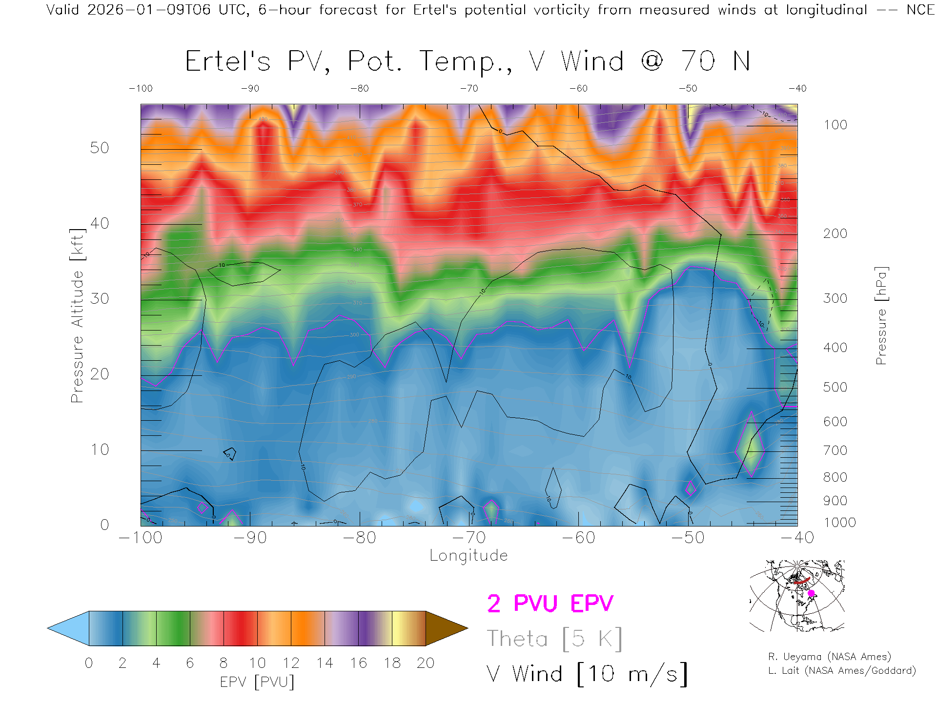 NCEP GFS Forecast PV X-Section (70 N)