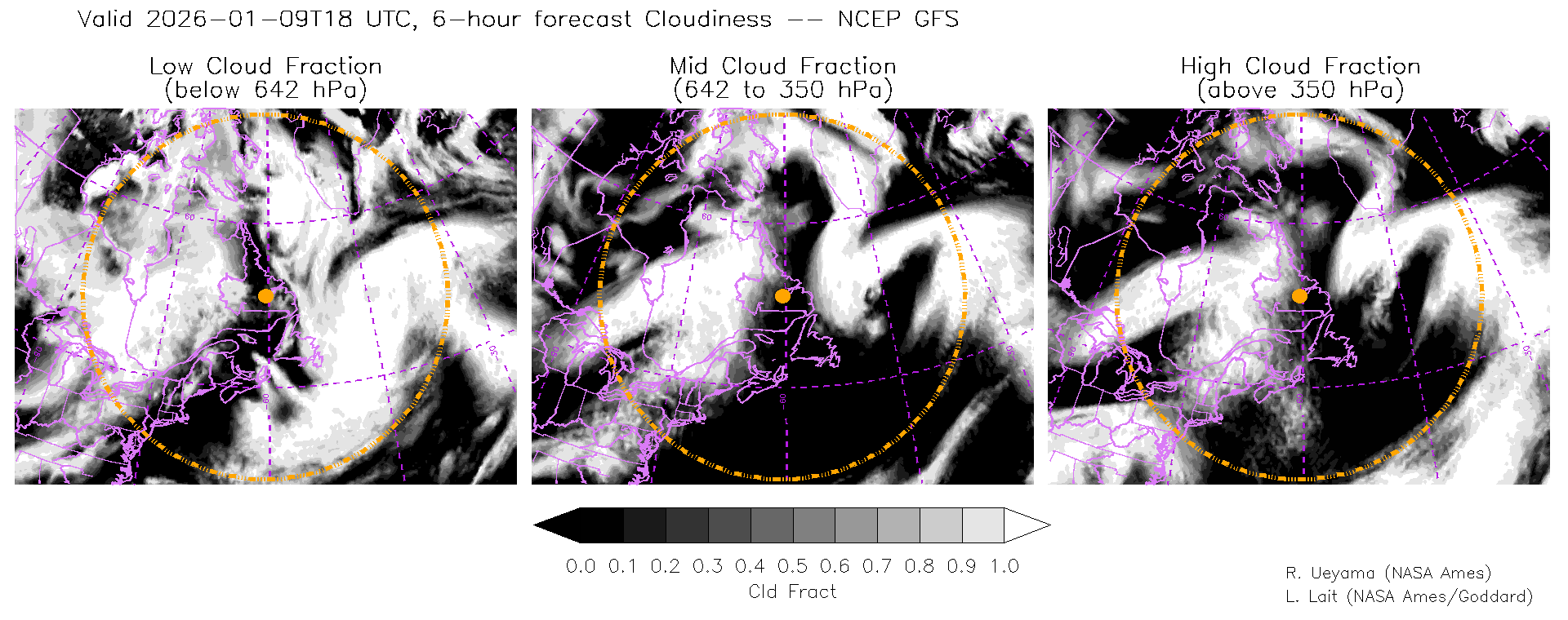 NCEP GFS Forecast Cloud Fraction (High, Mid, Low)