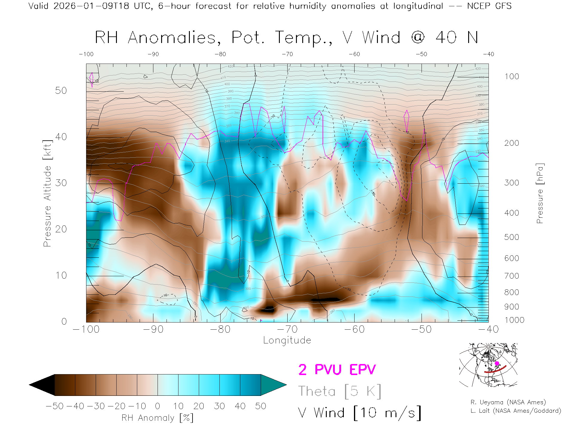 NCEP GFS Forecast Rel. Hum. X-Section (40 N)