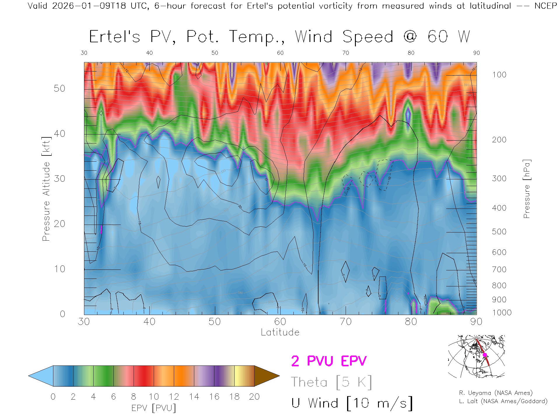 NCEP GFS Forecast PV X-Section (60 W)