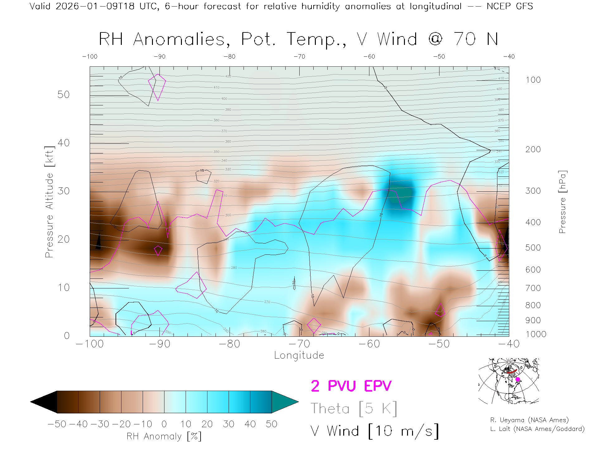 NCEP GFS Forecast Rel. Hum. X-Section (70 N)