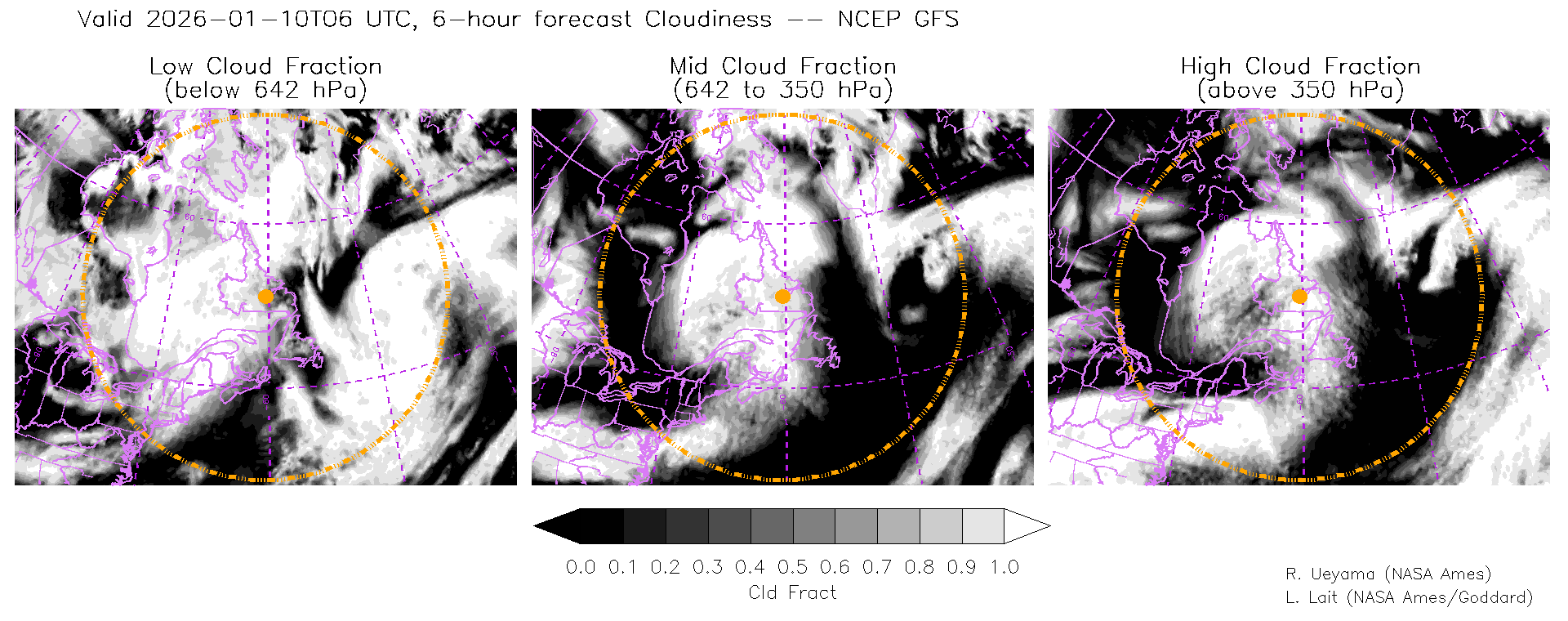 NCEP GFS Forecast Cloud Fraction (High, Mid, Low)