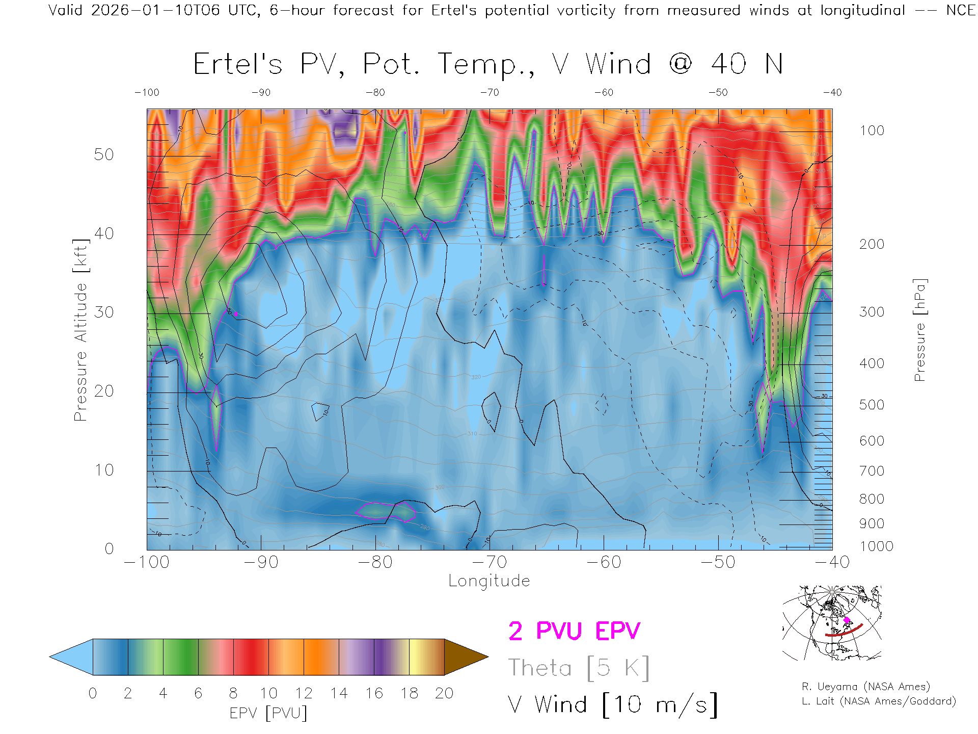 NCEP GFS Forecast PV X-Section (40 N)