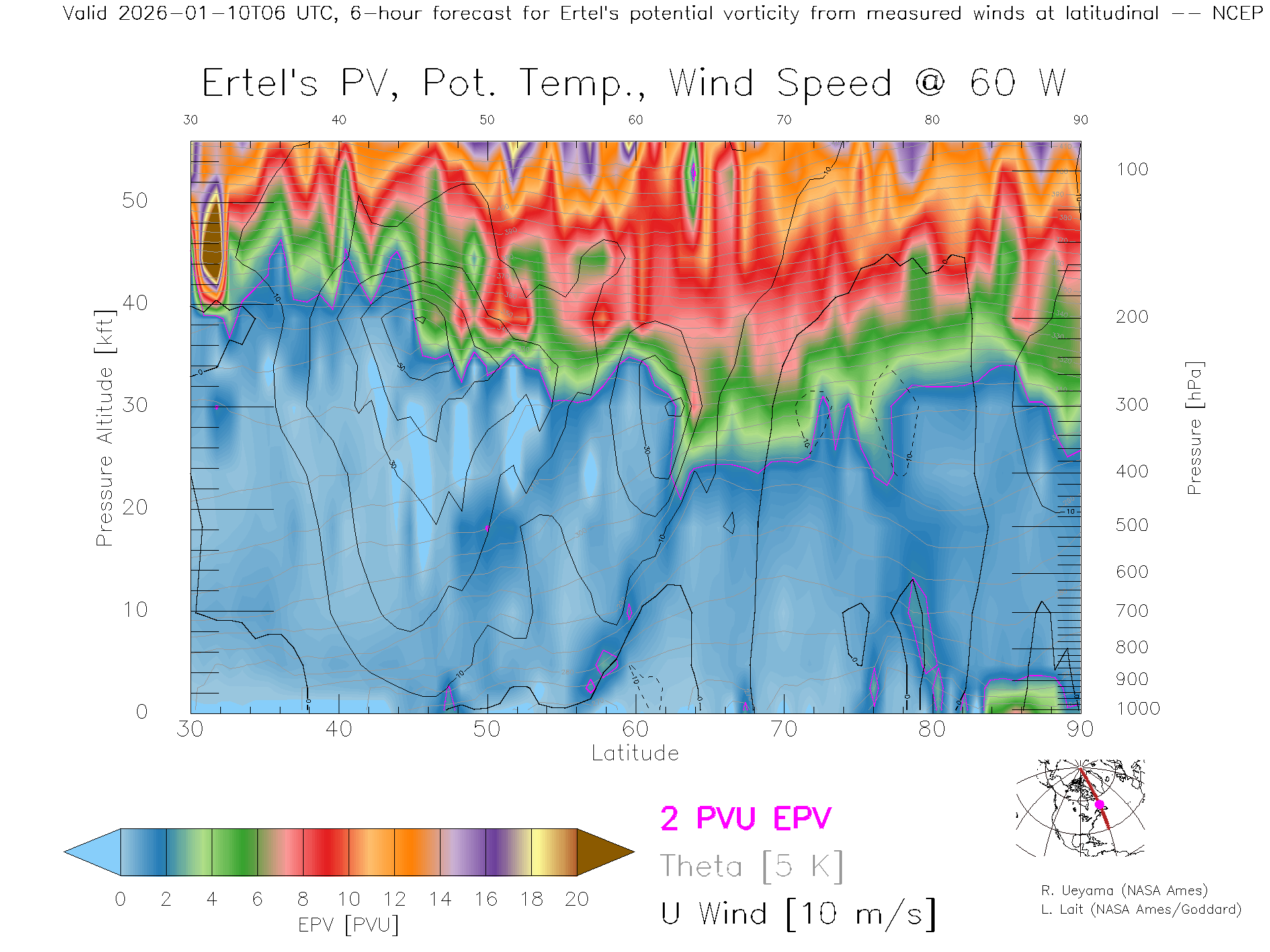 NCEP GFS Forecast PV X-Section (60 W)