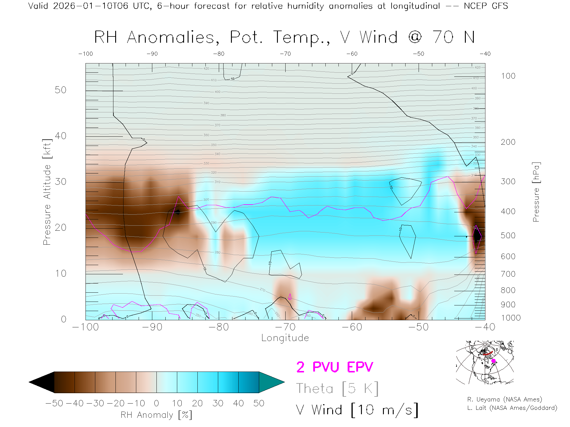 NCEP GFS Forecast Rel. Hum. X-Section (70 N)