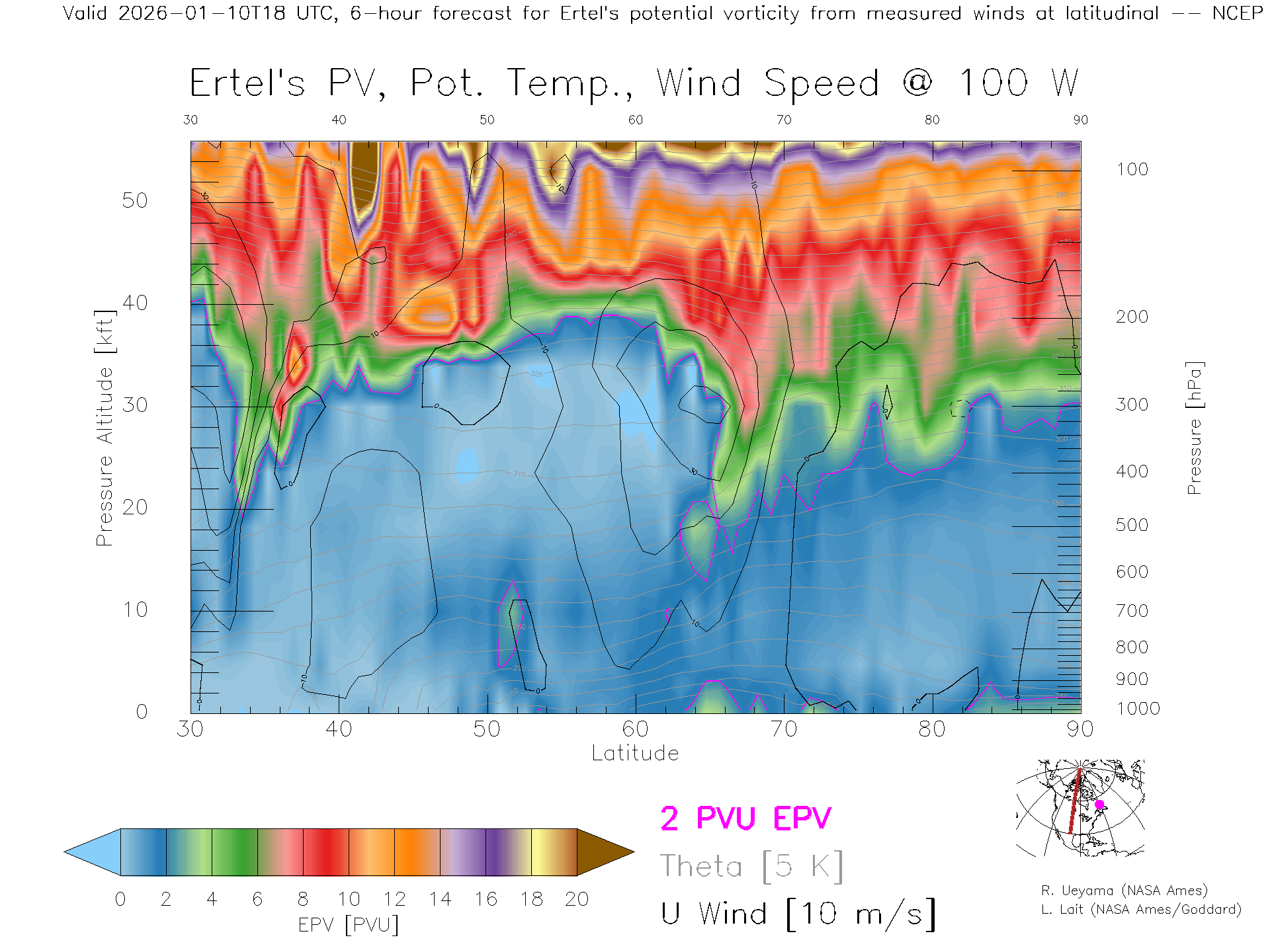 NCEP GFS Forecast PV X-Section (100 W)