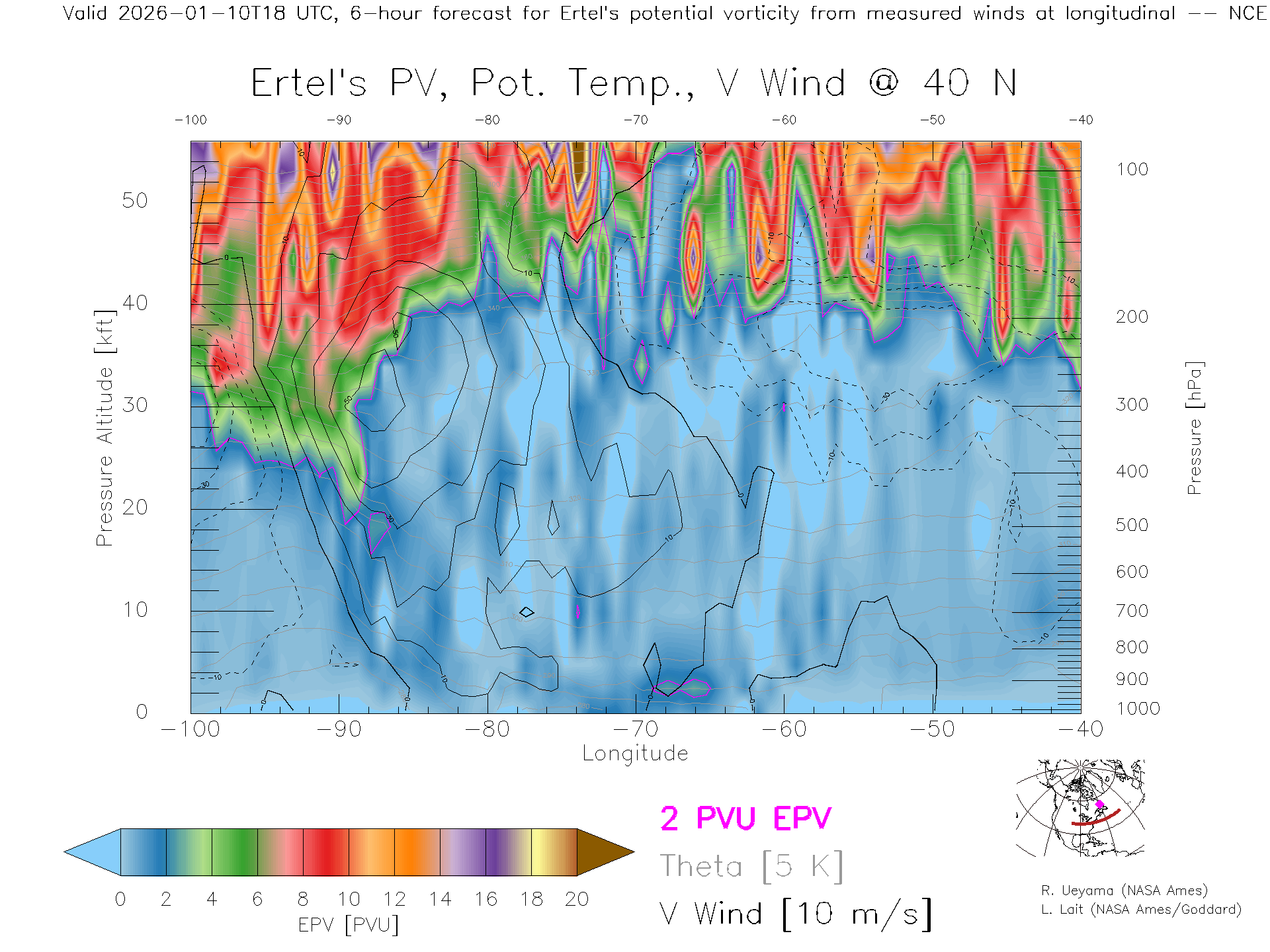 NCEP GFS Forecast PV X-Section (40 N)