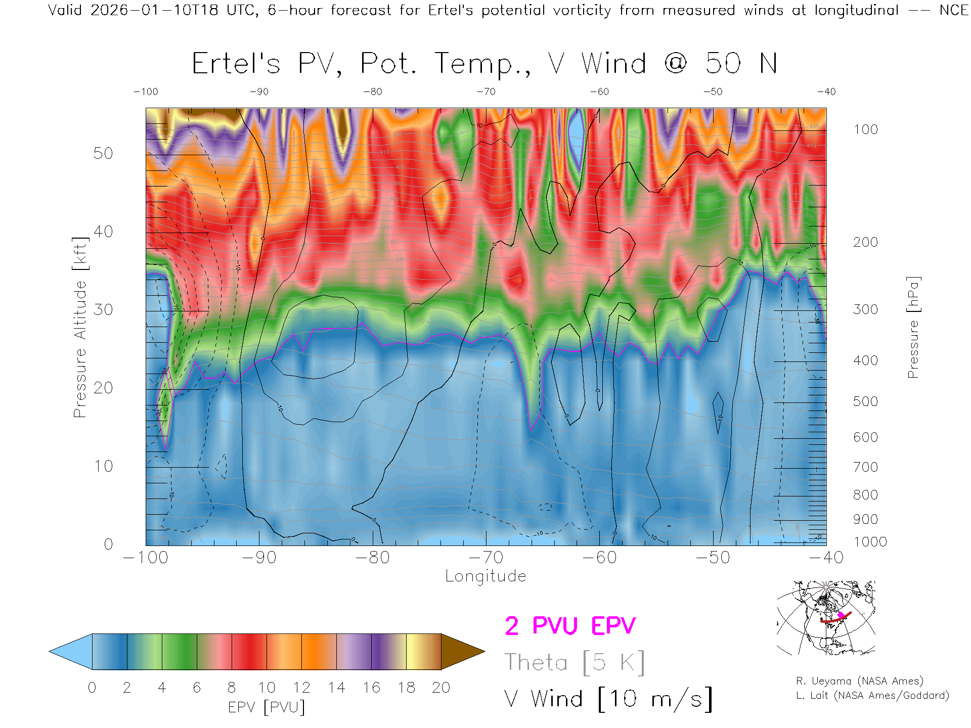 NCEP GFS Forecast PV X-Section (50 N)