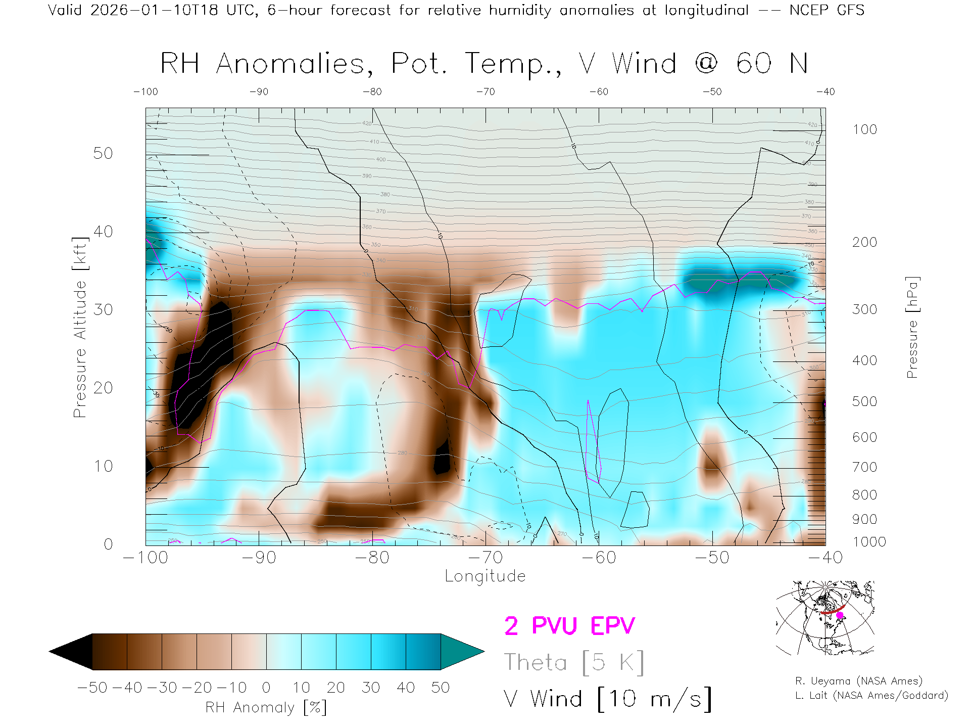 NCEP GFS Forecast Rel. Hum. X-Section (60 N)
