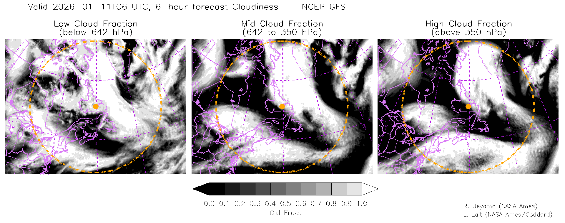 NCEP GFS Forecast Cloud Fraction (High, Mid, Low)