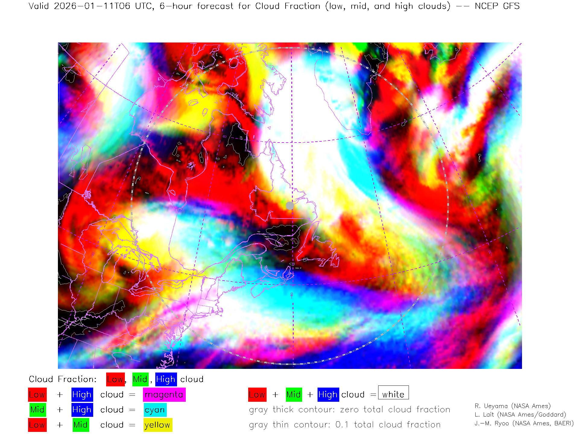 NCEP GFS Forecast Low-, Mid- and High-level Cloud Fraction