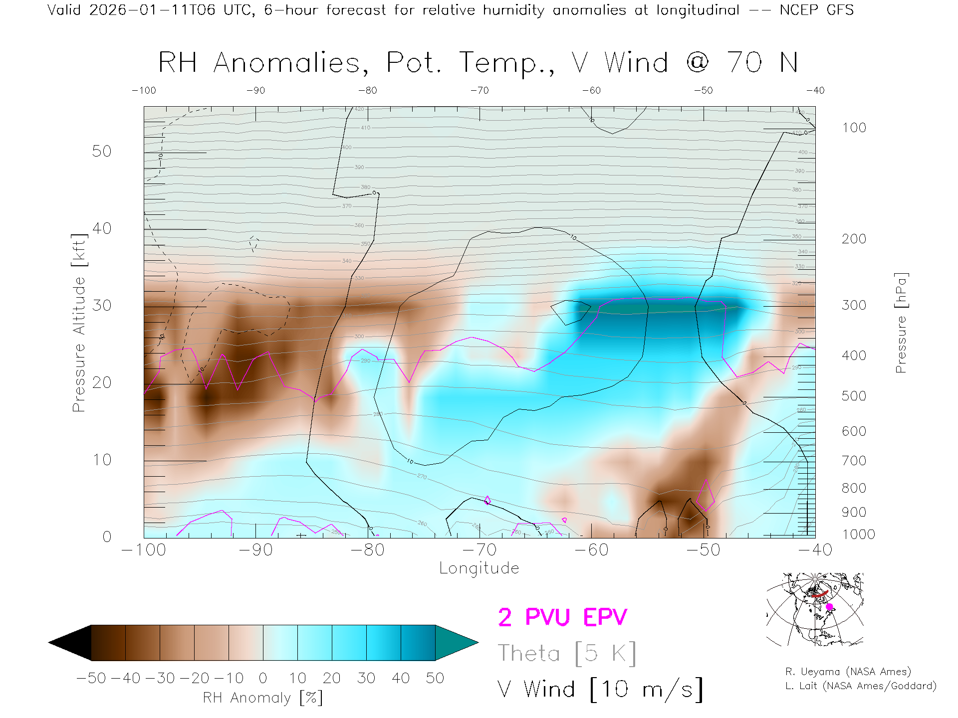 NCEP GFS Forecast Rel. Hum. X-Section (70 N)
