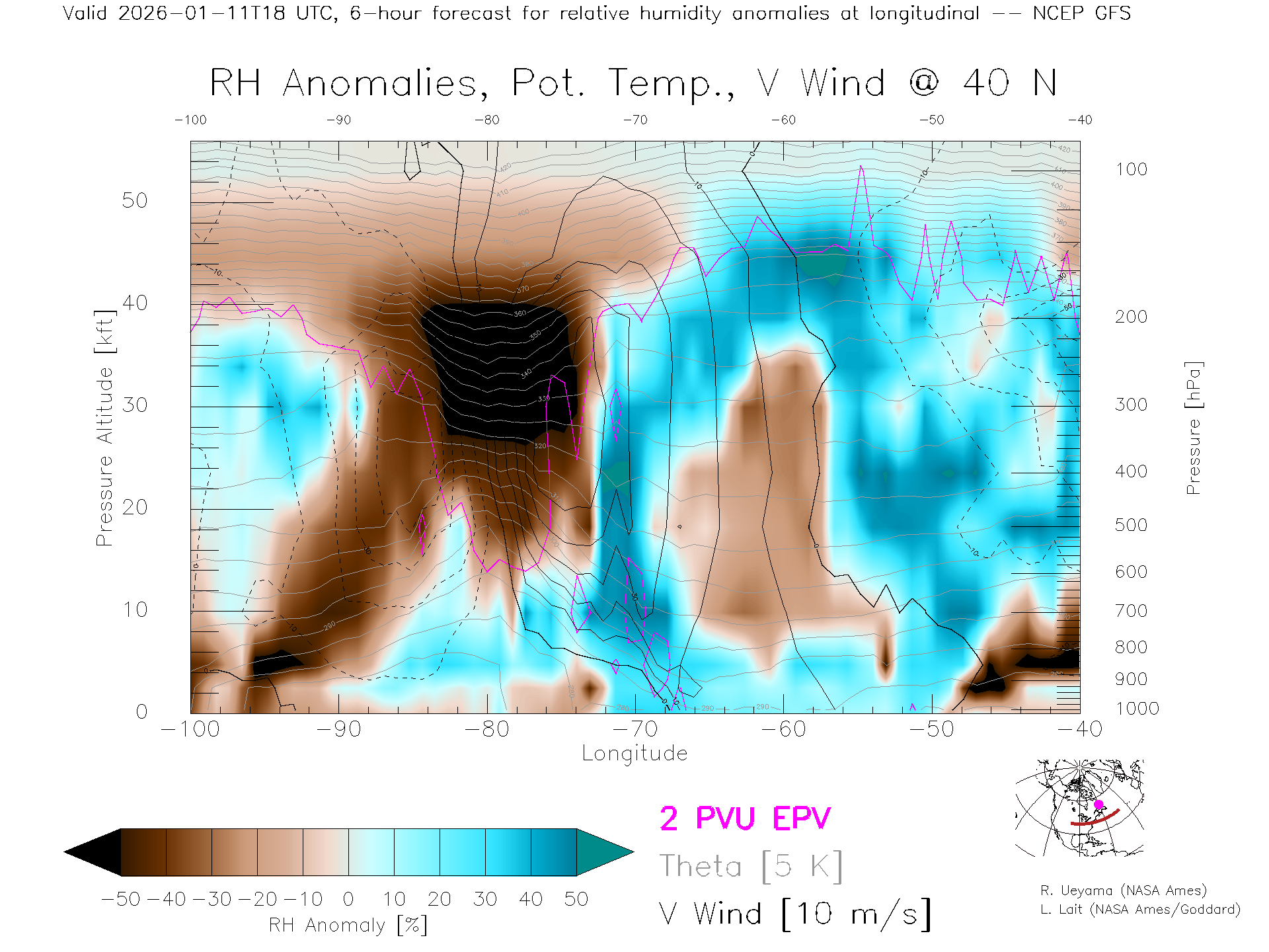 NCEP GFS Forecast Rel. Hum. X-Section (40 N)