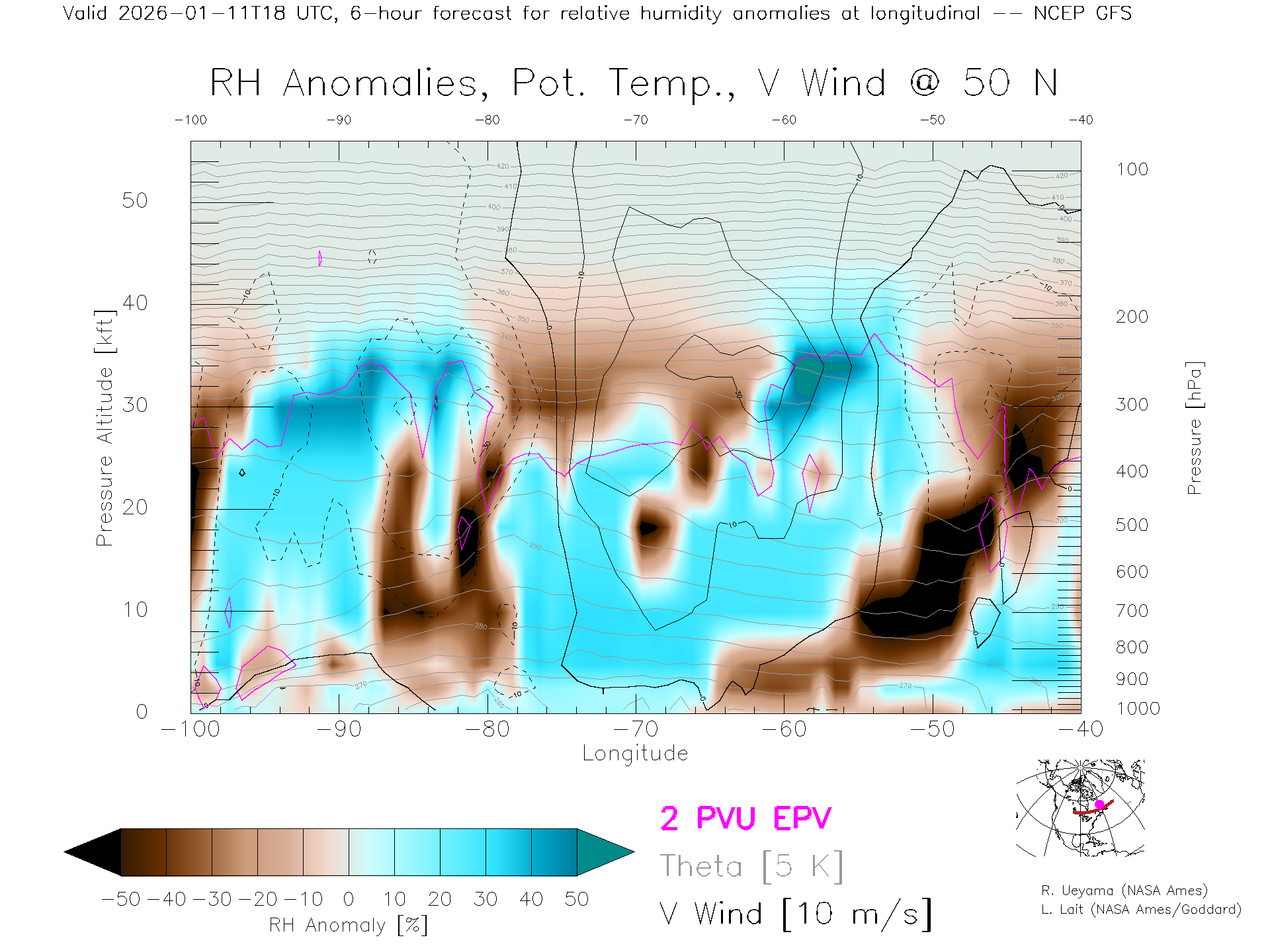 NCEP GFS Forecast Rel. Hum. X-Section (50 N)
