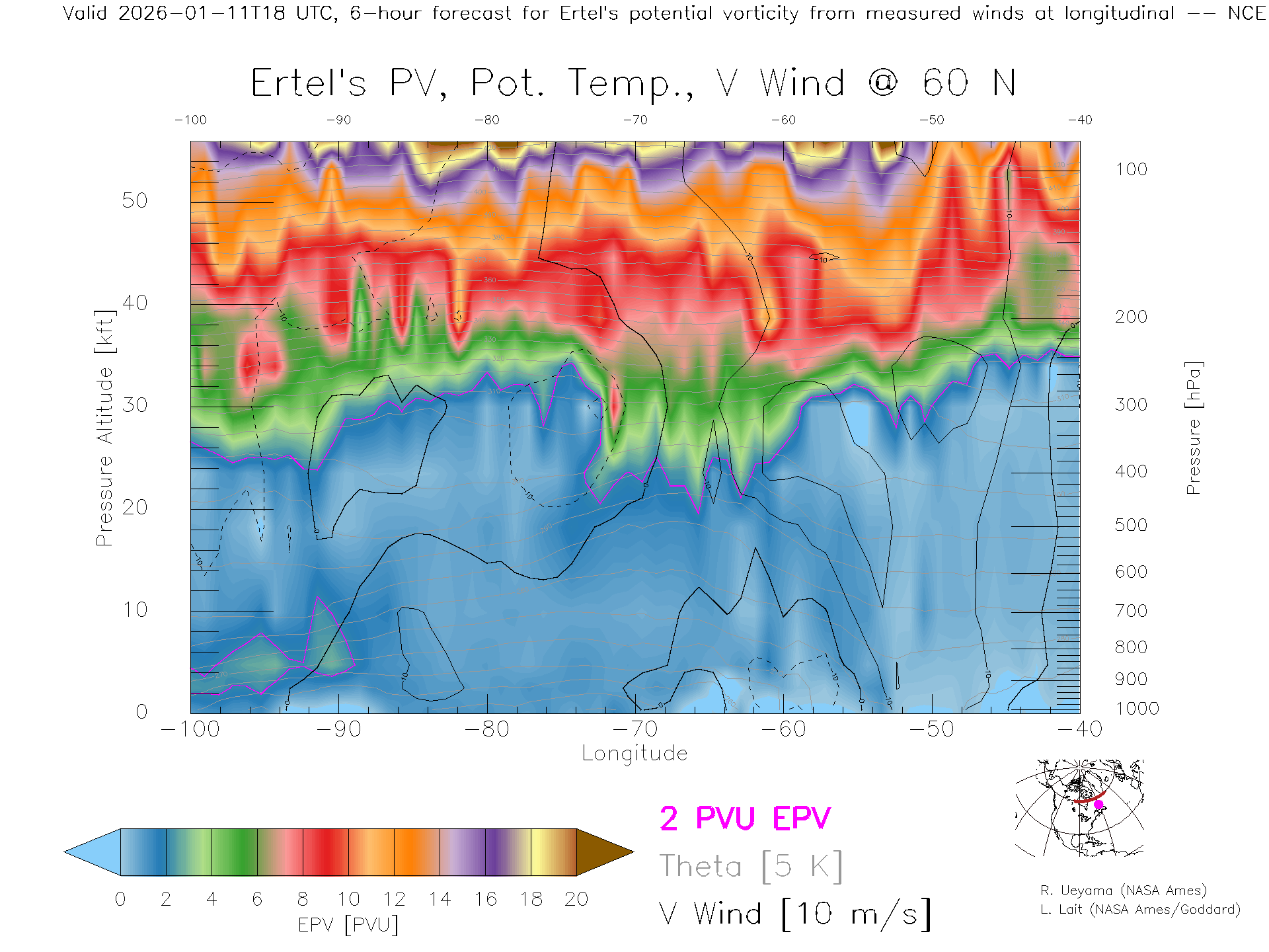 NCEP GFS Forecast PV X-Section (60 N)