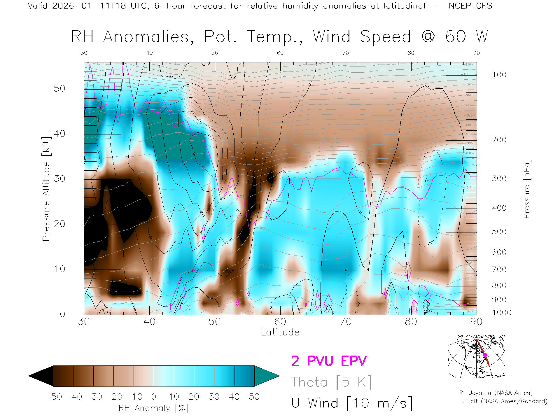 NCEP GFS Forecast Rel. Hum. X-Section (60 W)