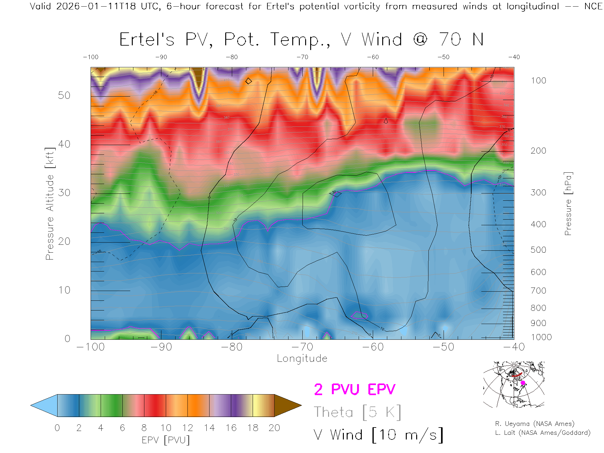NCEP GFS Forecast PV X-Section (70 N)