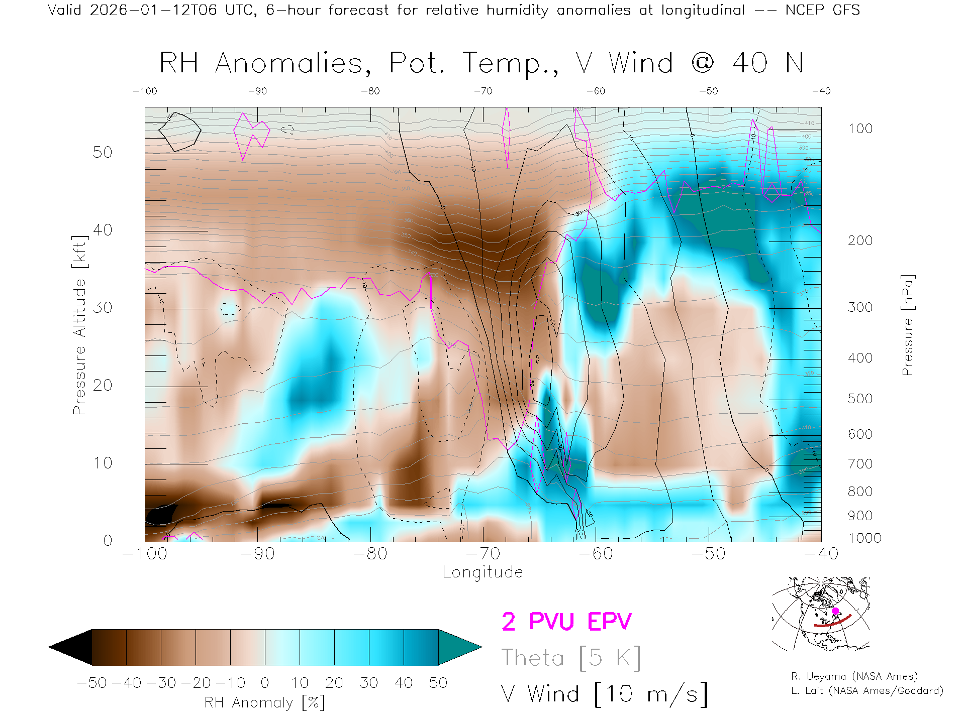 NCEP GFS Forecast Rel. Hum. X-Section (40 N)
