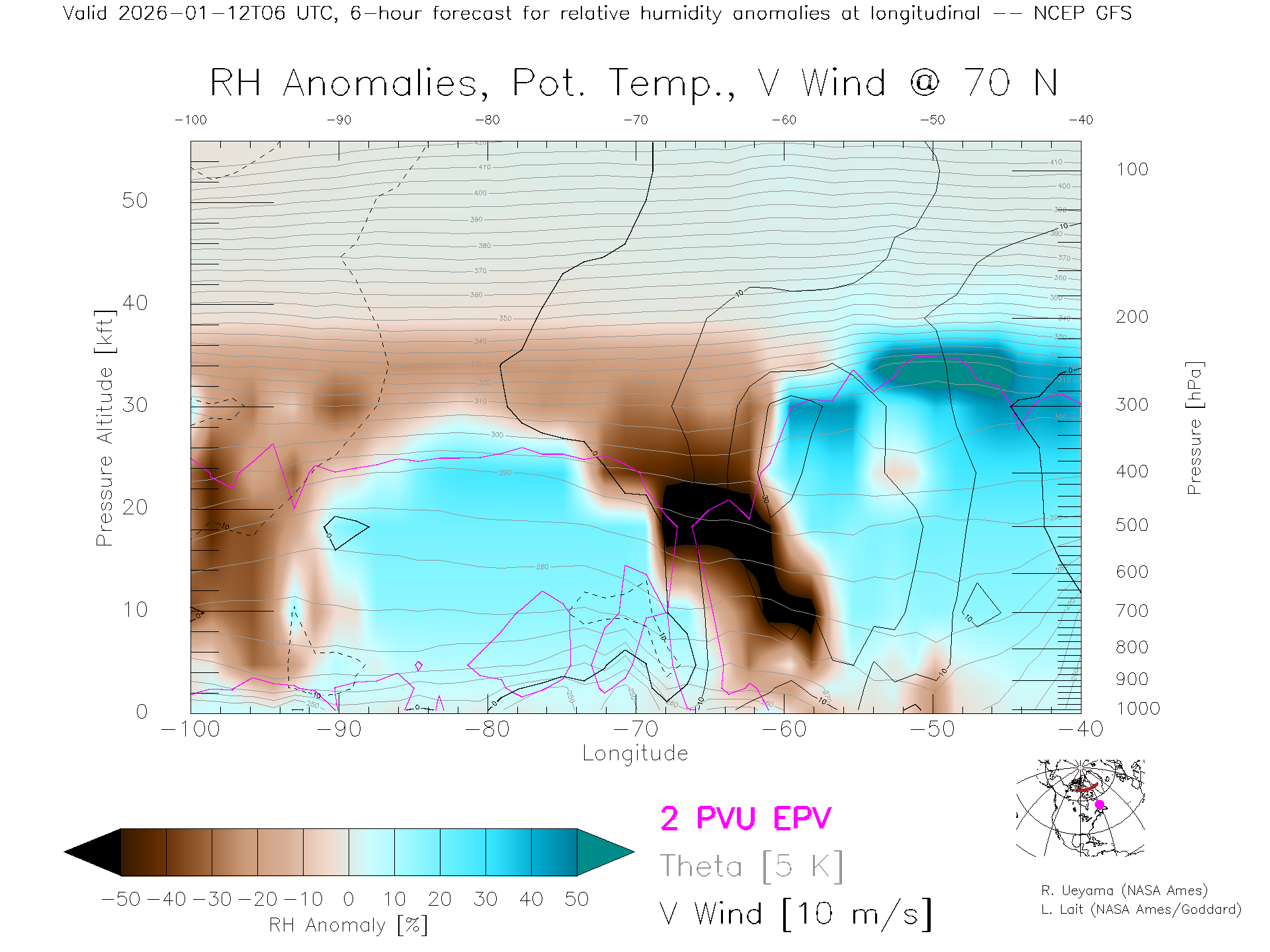 NCEP GFS Forecast Rel. Hum. X-Section (70 N)