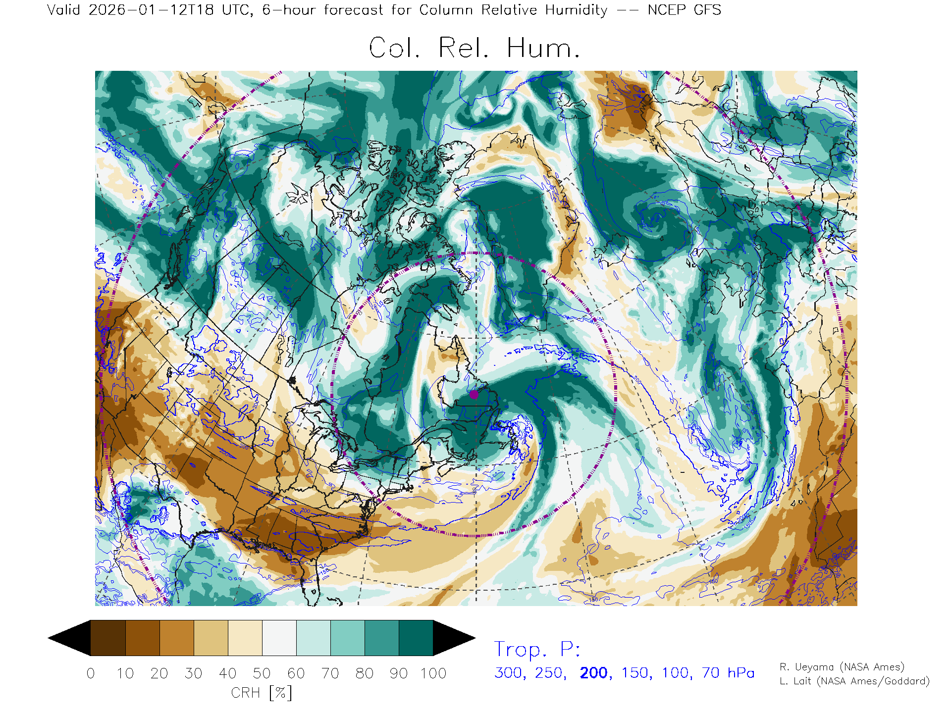 NCEP GFS Forecast Column Rel. Humidity