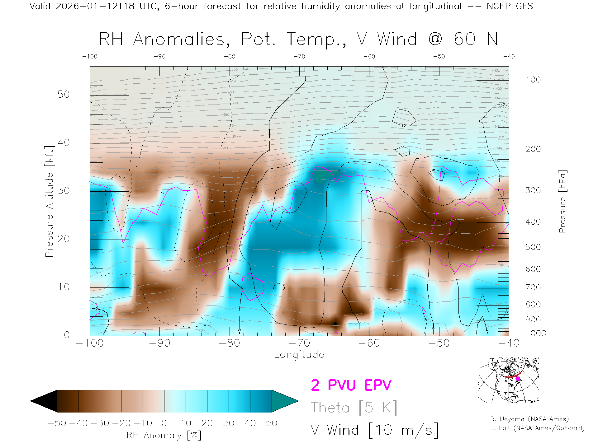 NCEP GFS Forecast Rel. Hum. X-Section (60 N)