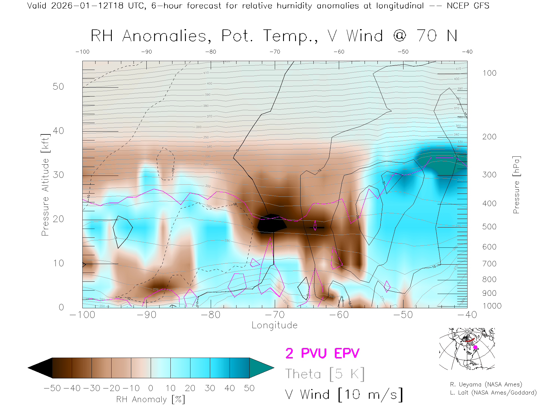 NCEP GFS Forecast Rel. Hum. X-Section (70 N)