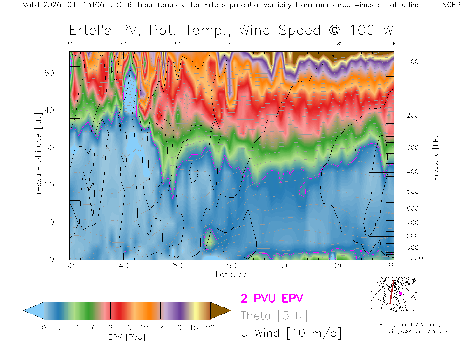 NCEP GFS Forecast PV X-Section (100 W)