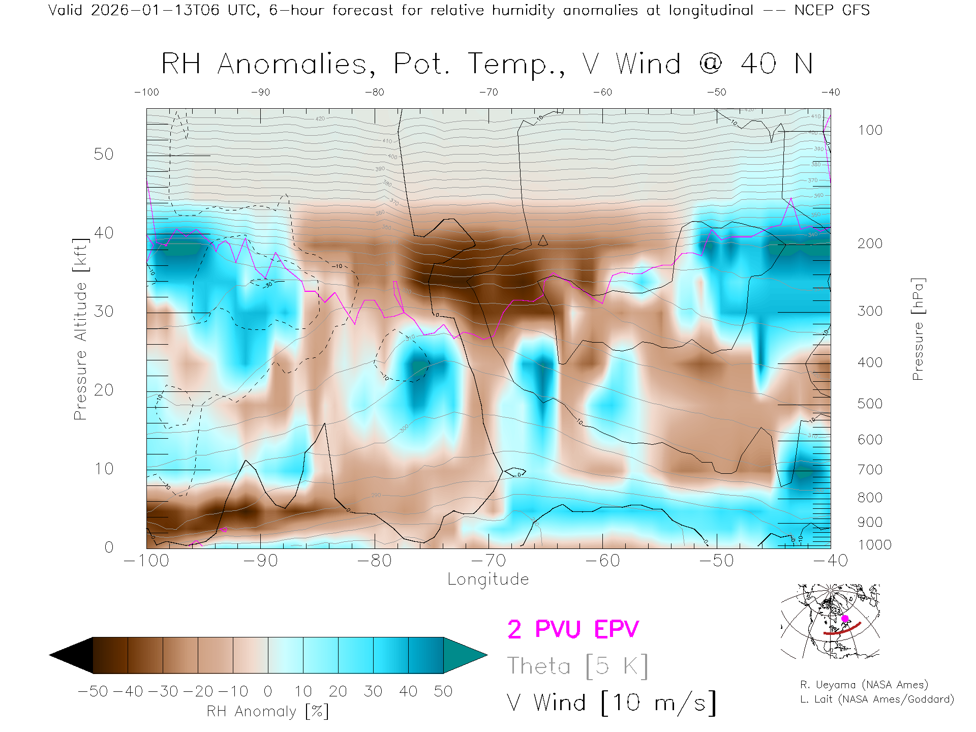 NCEP GFS Forecast Rel. Hum. X-Section (40 N)