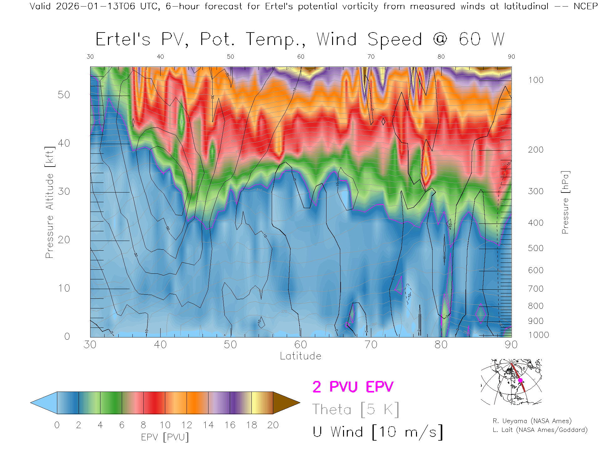 NCEP GFS Forecast PV X-Section (60 W)