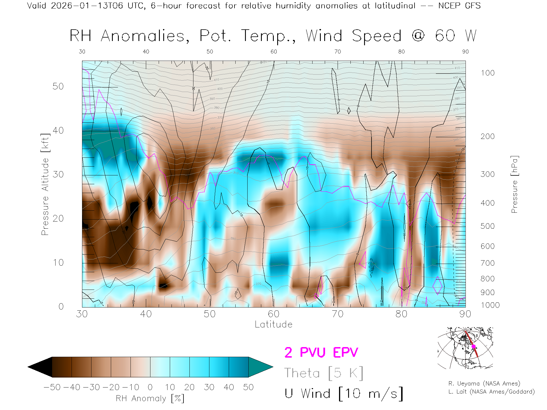 NCEP GFS Forecast Rel. Hum. X-Section (60 W)