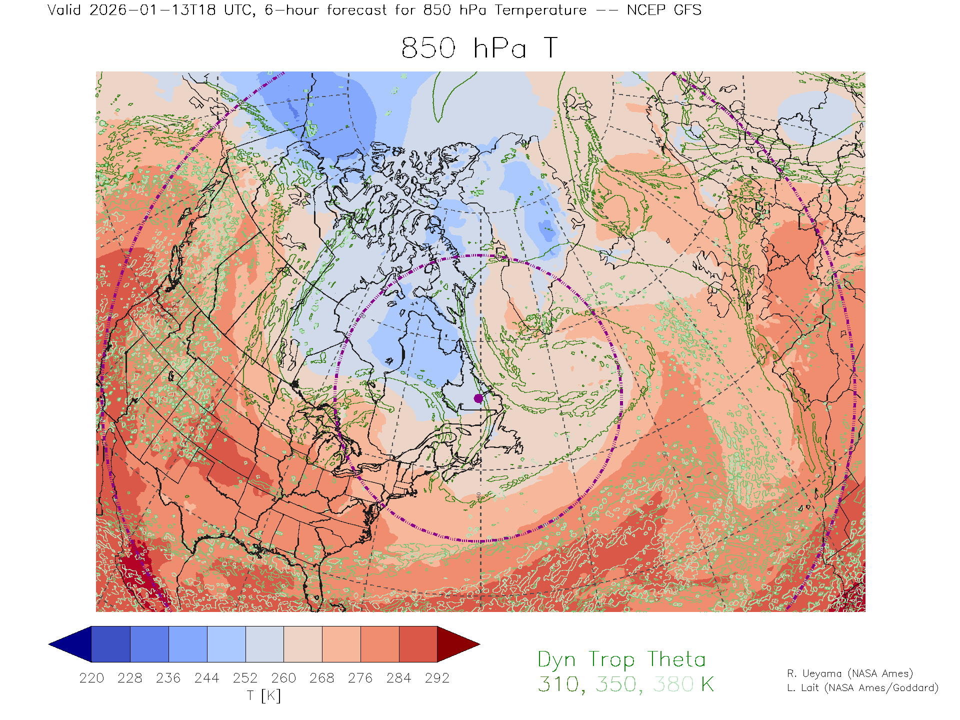 NCEP GFS Forecast 850 hPa Temp.